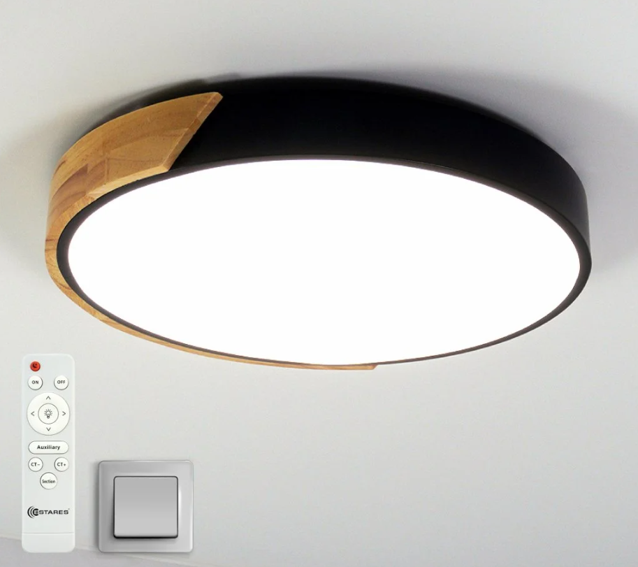 Люстра LED SOLEIN WOOD 50WR-RC-420*50 BLACK/WOOD/WHITE-220-IP20