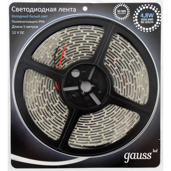 Лента Gauss LED Комплект 2835/60-SMD 4,8W 12V DC холодный (блистер 5м) 312400248