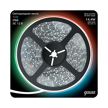 Лента Gauss LED Комплект 5050/60-SMD 14,4W 12V DC RGB (блистер 3м) 312000444